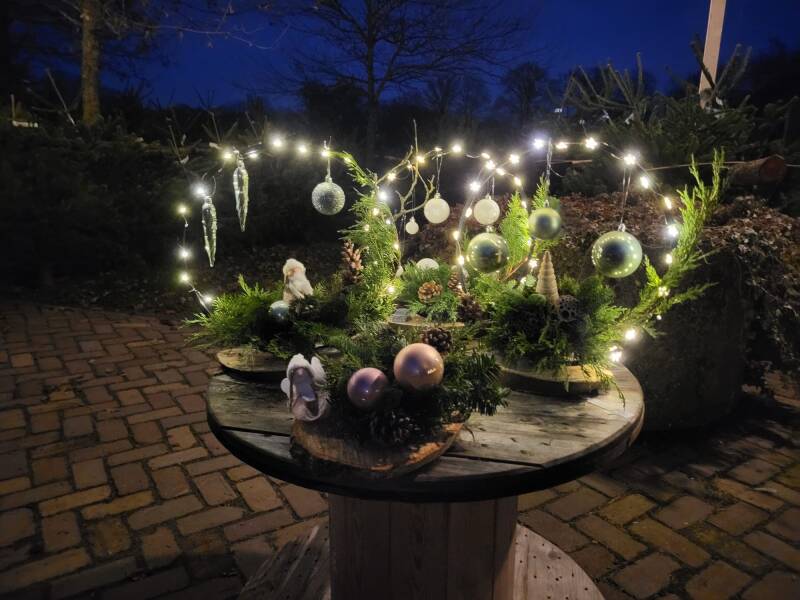 Bij Dijkman Kerstbomen Veldmaat verkopen we niet alleen kerstbomen, maar ook zelfgemaakte kerststukjes. We hebben alles uitgestald staan zodat u makkelijk uw gewenste boom of kerststukje kunt uitzoeken. Kom langs en ervaar zelf de sfeer.